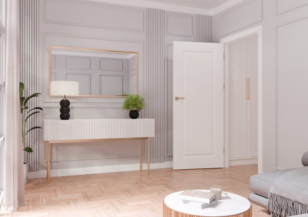 Az olyan részletek, mint a bordák, betétek, üvegezés és marás egyedi karaktert adnak az ajtóknak és a belső térnek. A választás az elrendezés stílusától és preferenciáinktól függ.
